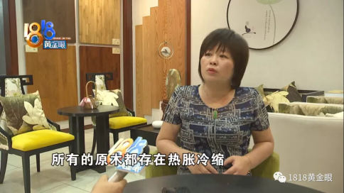 杭州璟望府全屋訂制家居店 蘇老板:“你說廠家有沒有做好,的確是有兩個(gè)沒有做好,裂縫是有的,我看見了,木頭是天然的物品,是一個(gè)活的物品,一切的原木都存在熱脹冷縮,造成的開裂的狀況,一切廠家一切木頭都存在這個(gè)狀況,腐臭呢那時(shí)咱們?nèi)タ吹臅r(shí)候,他沒有把背后撬開,咱們看見的是一個(gè)彩色的節(jié)疤,爛還是不爛這個(gè)能夠去探測的,木頭原本的節(jié)疤,一切的木頭全是有節(jié)疤的。”