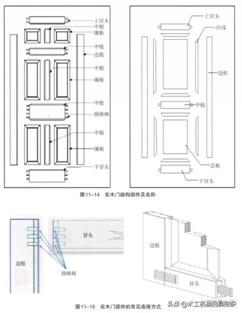 實(shí)木門(mén)全面構(gòu)造并且常見(jiàn)的部件連通方法見(jiàn)圖11-14,圖11一15所示。