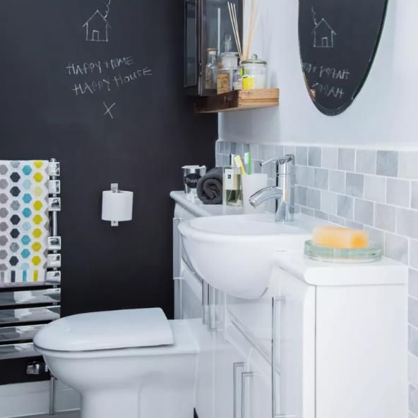 黑板漆讓您可以隨時(shí)改變前景。作為樓下廁所的想法,它創(chuàng)造了一個(gè)機(jī)會,可以為客人寫歡迎信息或在使用房間時(shí)思考令人難忘的名言。為如廁訓(xùn)練增添趣味元素是一個(gè)好主意或家庭浴室。