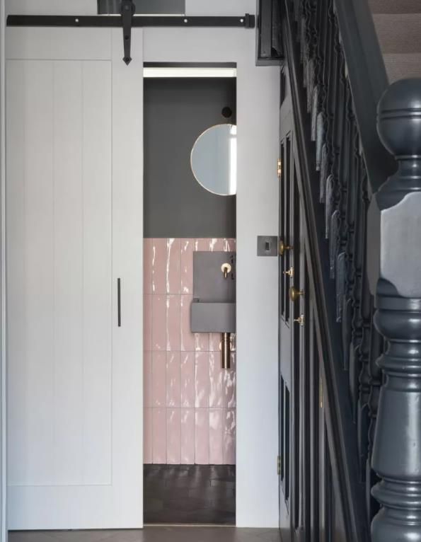 尋找在有限空間內(nèi)智能的節(jié)省空間的設(shè)計(jì),例如這種滑動門解決方案。雖然強(qiáng)烈建議在小衣帽間選擇向外打開的門以使房間感覺更大,但當(dāng)有問題的房間位于樓梯下方的走廊時(shí),這可能會很棘手。