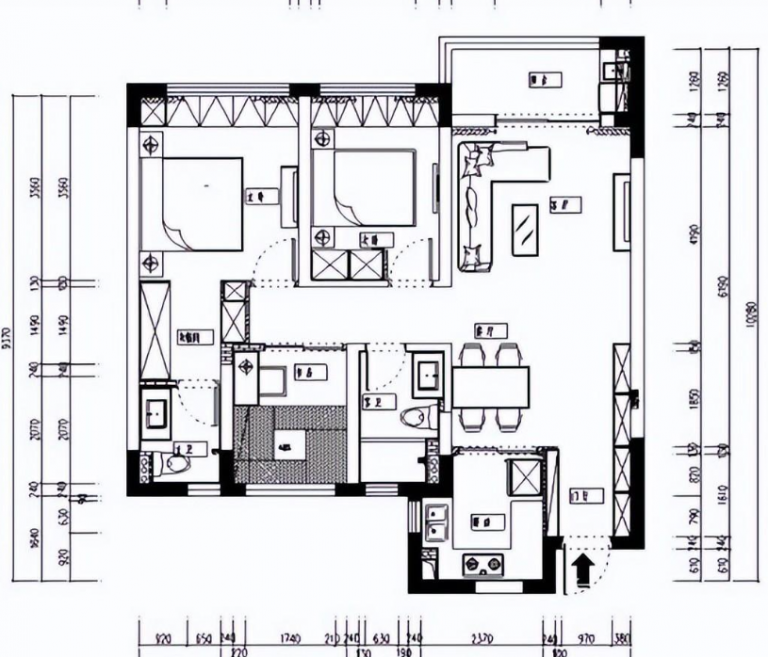 這是原始結構戶型圖,屬于比較典型的戶型了,套內面積僅有89平,但是也足夠滿足一家基本生活需求了!對于這樣的戶型,其實我們都比較常見,也不是那么陌生。動靜分區其實非常合理,盡管不是屬于南北通透的戶型。