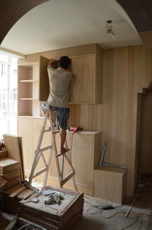 而木工打柜子,直接減少了眾多繁瑣的步驟,只需要自己購買板材和輔材,讓木工在家里現場打即可,用時大概十天左右。