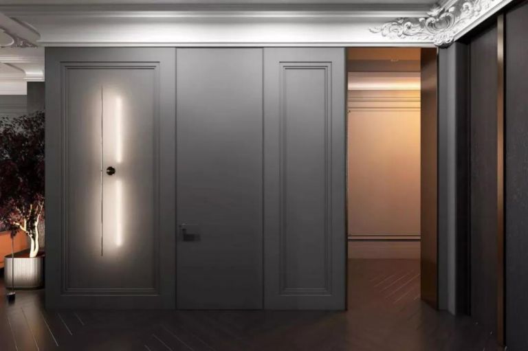高級灰的護墻板配上好看的燈光設(shè)計,讓整個家自帶輕奢優(yōu)雅感。