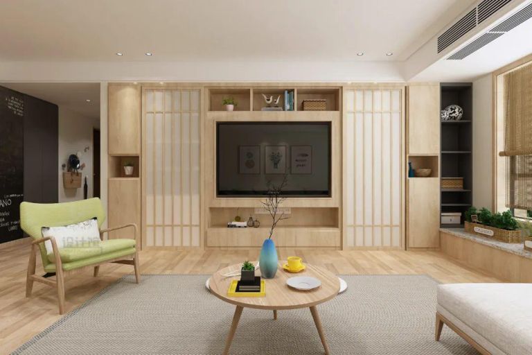 屏風造型在中式、日式風格中,是一種較為常見的設計元素;而在電視墻上,屏風造型也是用得比較多的一種設計,而屏風設計用在背景墻上,往往也是比較講究對稱設計效果,這樣才能彰顯出屏風造型的設計亮點。