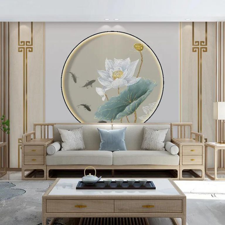 新中式壁布,將現(xiàn)代元素和古典中式元素相結(jié)合,以現(xiàn)代人的審美需求,打造富有傳統(tǒng)韻味的背景墻。